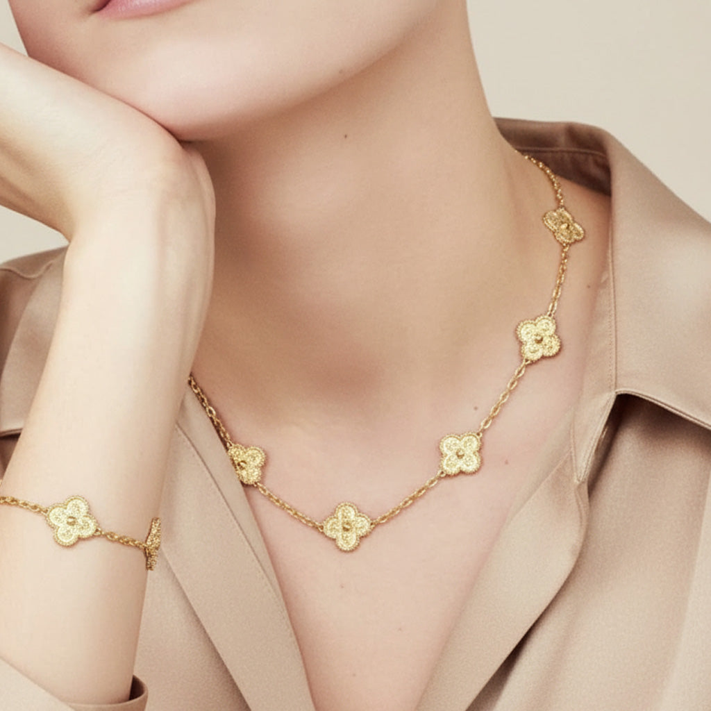 Vintage Alhambra Yellow Gold 10 Motifs Necklace
