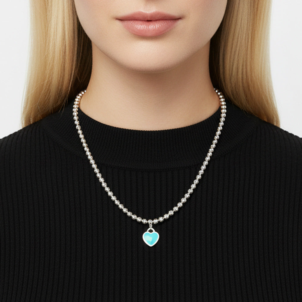 The 18K Return to T Heart Tag Bead Necklace brings timeless elegance to modern design....