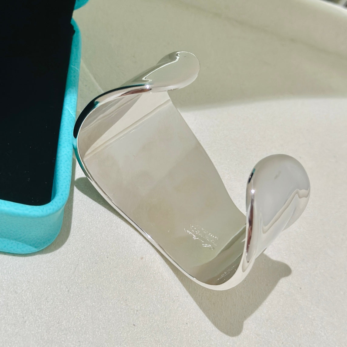 The Elsa Peretti Medium Bone Cuff Bracelet celebrates the harmony between art and form. Crafted from 925 sterling silver, it features organic, fluid curves inspired by the natural contours of the human body. Its sculptural silhouette makes a striking statement, while the polished silver surface exudes understated luxury. Measuring 16–18cm in circumference with a 6.5mm band width, this cuff offers a bold yet elegant fit. Durable, hypoallergenic and timeless, it’s a piece that embodies modern minimalism and enduring sophistication—perfect for both day and evening wear.