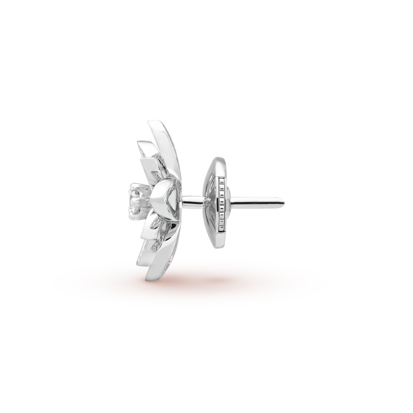 Each earring features an intricate openwork lotus motif adorned with 52 brilliant-cut diamonds totaling 0.32 carats, offering a refined sparkle that captures the light with every movement. The large stud design ensures both comfort and elegance, making them suitable for day or evening wear.