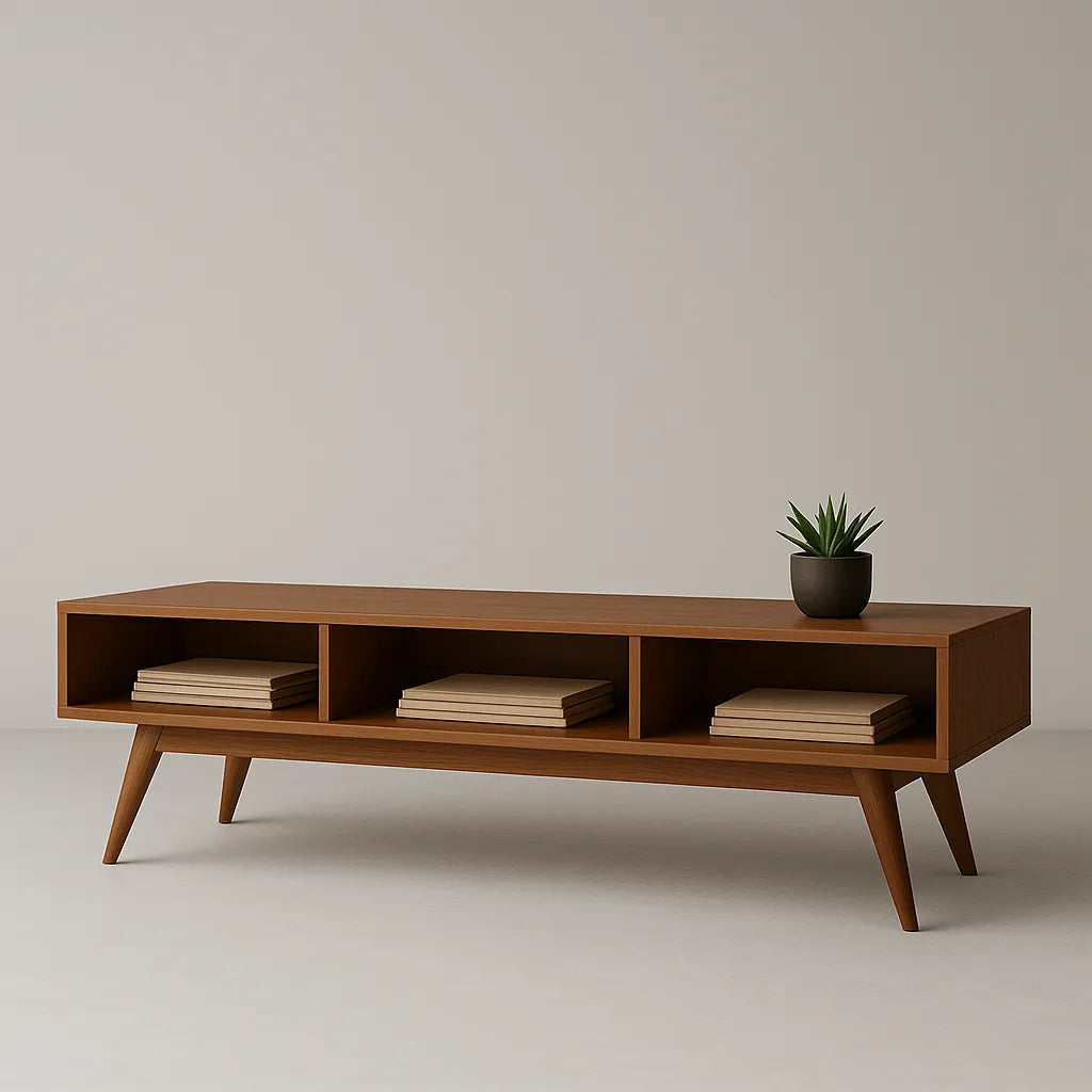Open Shelf Bench Mid-Century Storage Solution for Modern Interior