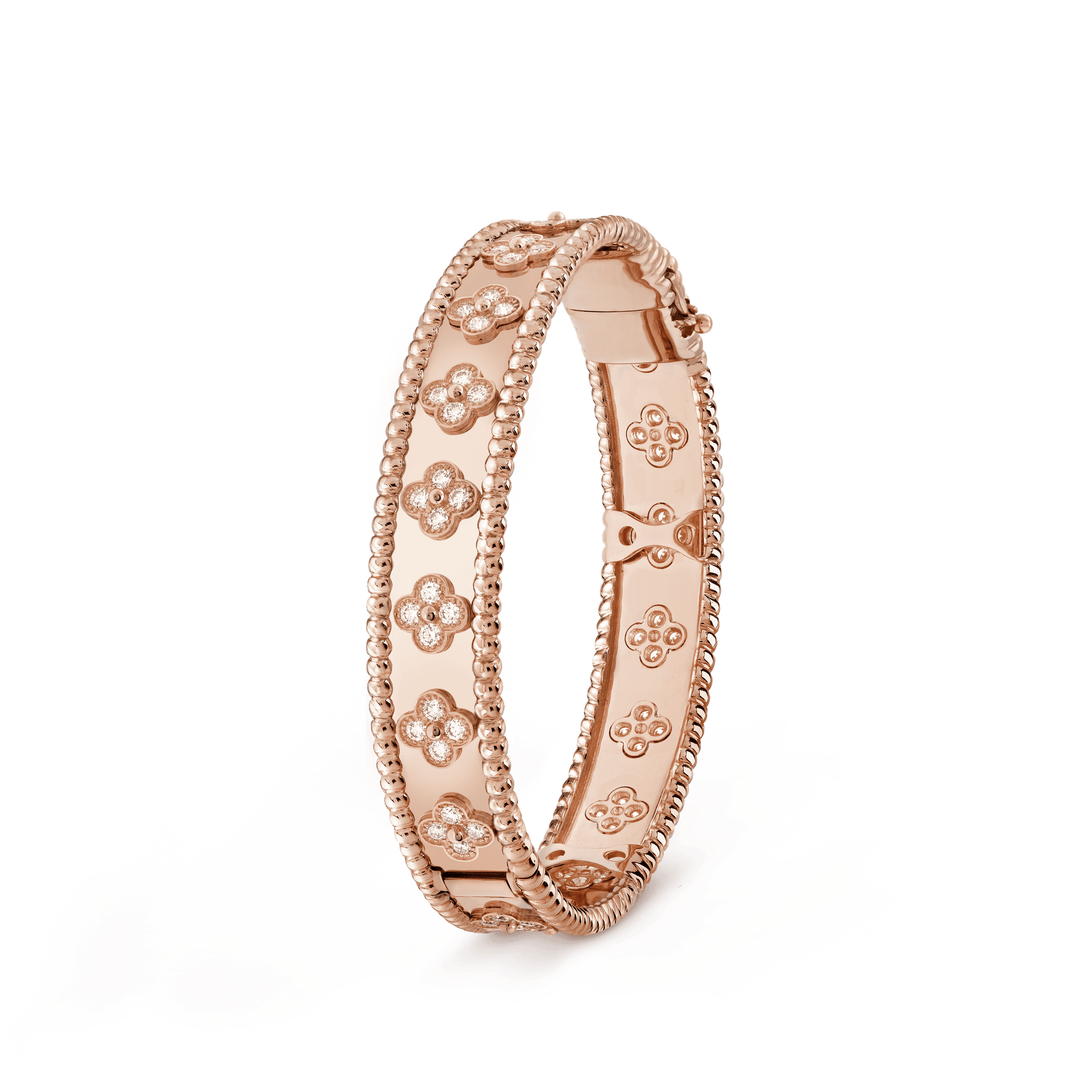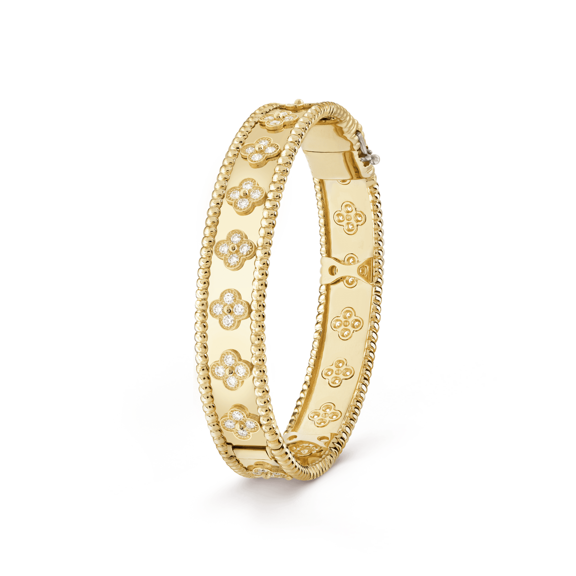 The Perlée Clovers Bracelet embodies timeless sophistication, crafted in luminous 18K gold vermeil and embellished with brilliant pavé diamonds. Its delicate clover motifs and finely beaded edges highlight exceptional craftsmanship, blending artistry with refined luxury.