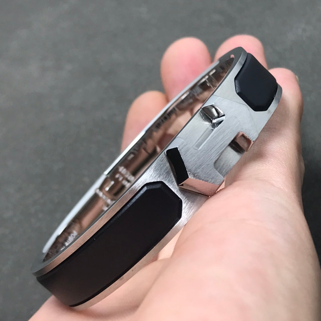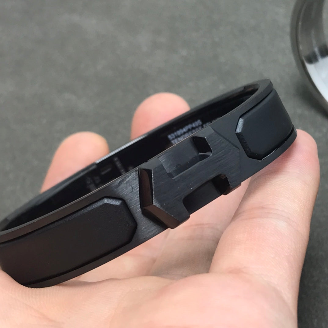 Accented with sleek black enamel panels and a distinctive H-shaped clasp, this bracelet combines durability with refined style. Its smooth, polished surface ensures lasting comfort and elegance—perfect for both everyday wear and formal occasions. A timeless accessory that complements any modern wardrobe.