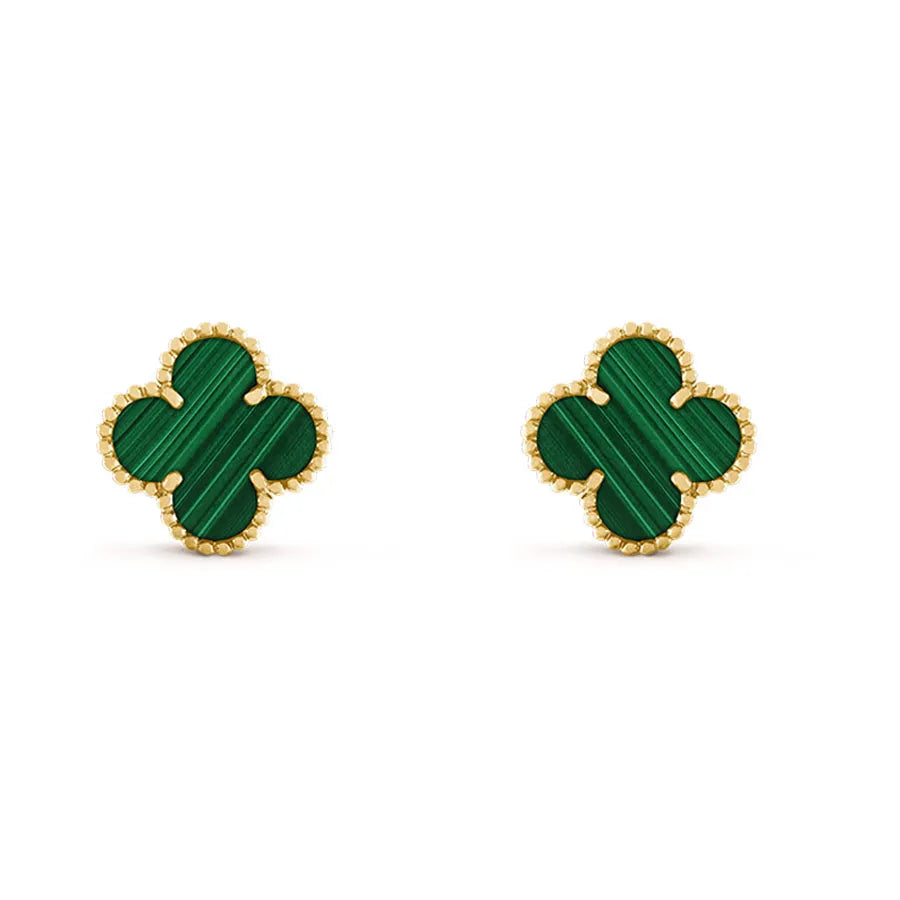 The Vintage Alhambra Malachite Earrings radiate timeless elegance through their signature four-leaf clover design — a symbol of luck and harmony. Each earring features vibrant green malachite framed in warm 18K gold vermeil, offering a captivating balance of natural color and fine craftsmanship.